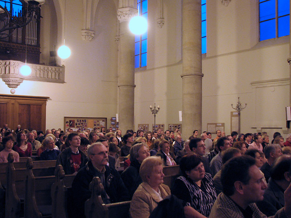 Přibližně dvě stovky posluchačů si vyslechly například tři části z Vivaldiho Čtvera ročních období, Mozartovo Ave verum corpus, Chačaturjanův Šavlový tanec nebo Brahmsovy Uherské tance číslo 5 a 6. Hudební zážitek byl umocněn kázáním Štěpána Hájka, ve kterém nám připomněl poslání květné neděle.