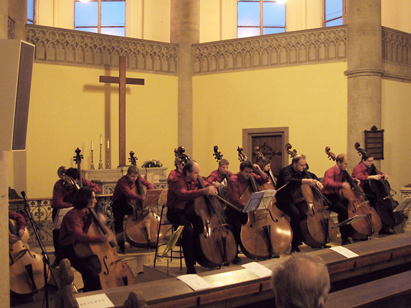 Pozvánka na nešpory v Husovických listech 2/2008 byla zakončena odstavcem: „Co napsat na závěr? Víte, co je lepší než jeden kontrabas? Dva kontrabasy. A co teprve celý kontrabasový soubor! Přijďte se v dubnu sami přesvědčit!“. První dubnový nedělní večer v Červeném kostele snad ještě převýšil očekávání.