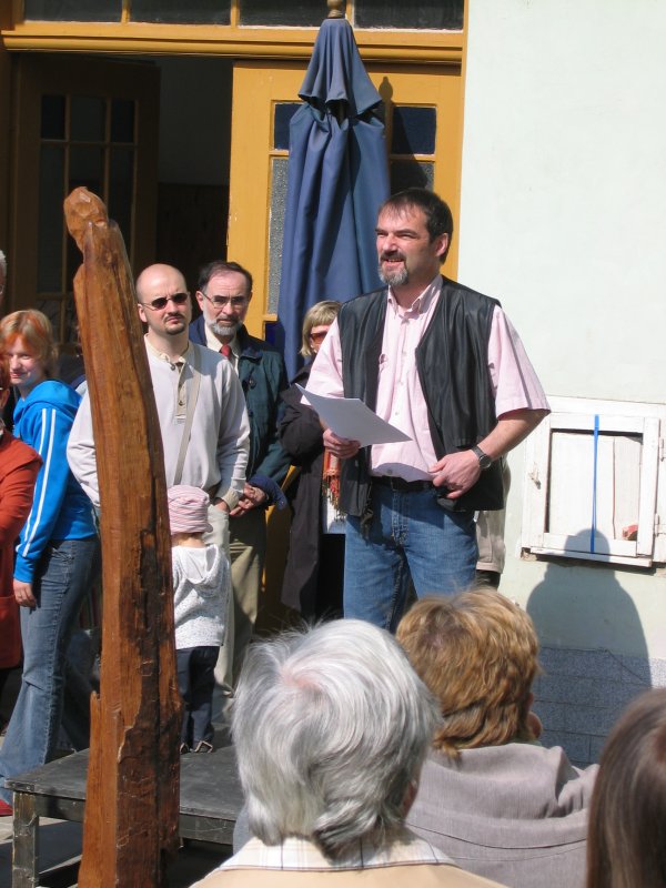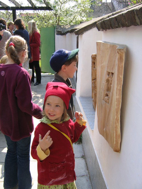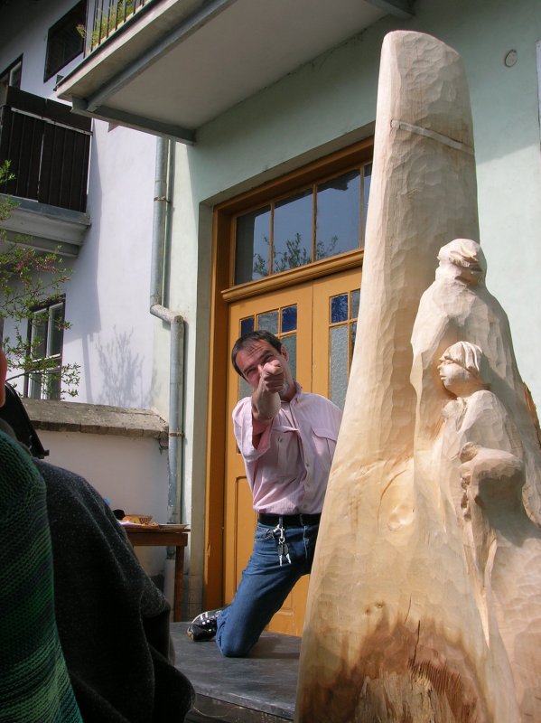 Na dvorku tentokrát vystavoval svá díla brněnský sochař a řezbář Jiří Netík s manželkou.