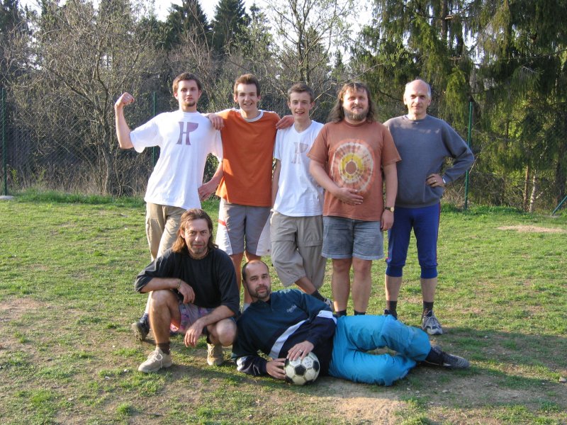 Vrcholem odpoledne však byl zápas mužstev seniorských (nutno podotknout, že na straně Husovic bylo z počátku opravdových seniorů poněkud více, což samozřejmě vysvětluje určitou dýchavičnost v projevu celého týmu). V brance se jako tradičně objevil bezmála profesionální Ivan Cimr, v obraně skálopevný Tomáš Patra dobře doplňovaný stále velmi rychlým Vláďou Zikmundem. V záloze se skvěli Martin Blažek s Markem Kovářem a útok kombinoval zkušenost Štěpána Hájka s mladistvou průrazností hostujícího Honzy Ženatého. Přesto se však současný zbraslavský tým ukázal nad síly husovického kolektivu, neboť se mu přece jenom podařilo vstřelit branku, na kterou naši borci již odpověď nenašli. Nic nepomohlo, že rodina Zikmundova nahradila přece jenom opotřebovanějšíno Vláďu mladým Pavlem, že Štěpán uvolnil místo důraznému Gregorovi, že Martin na hřiště pustil Valdu. Zbraslavští se stáhli do betonové obrany a nepustili naše útočníky k nebezpečnější akci. Naopak na druhé straně musel brankář Ivan několikrát obratně zasahovat před dotěrnými zbraslavskými útočníky. Utkání skončilo nejtěsnějším výsledkem 0:1, což je nakonec vzhledem k síle zbraslavkého týmu a k výhodě jeho domácího prostředí pro husovické nesporně lichotivé.