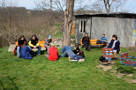 Poté jsme sestoupili do údolí říčky Rokytné, kterou jsme pak sledovali po levém i pravém břehu. V obci Budkovice některé z nás zaujaly kolotoče, všichni jsme se posilnili, a někteří se odebrali na autobusovou zastávku, aby se již vrátili do Brna.