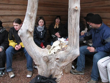 Poté, co se výletníci nabažili pohledů na lány bledulí, společně posvačili v rázovitém přístřešku pro poutníky. Zřejmě v tomto přístřešku nebyli první, soudě dle lebky některého z jejich předchůdců, který mrazivý výlet za bledulemi zřejmě nepřežil.