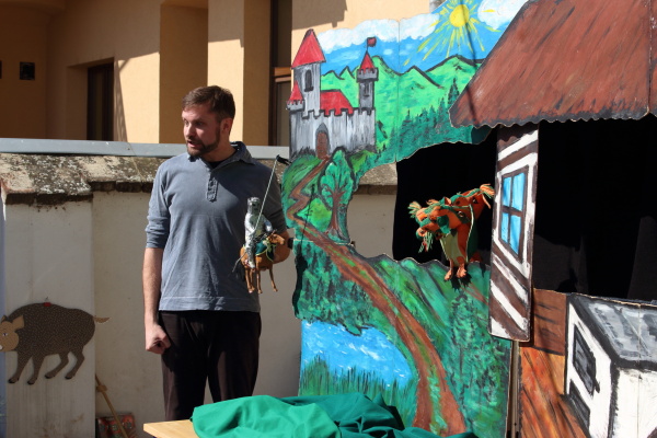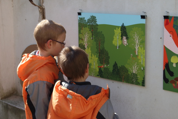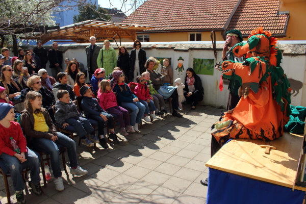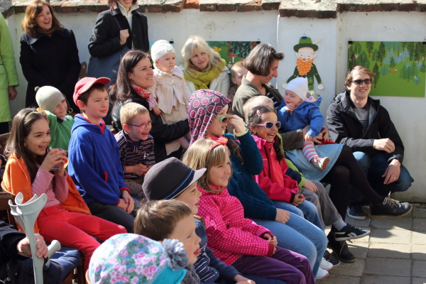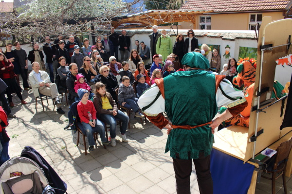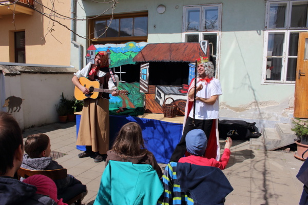 První část XVI. ročníku Husovického dvorku začala v neděli 19. dubna. Po bohoslužbách se konala vernisáž výstavy ilustrací Lenky Křikavové k dětské knížce Vítej v lese. Tyto ilustrace byly vybrány na Bienále grafického designu a získaly mezinárodní ocenění jako nejlepší dětská kniha roku 2014. Po vernisáži přišlo na řadu představení Divadélka pro školy Písnička pro Draka aneb Jak se vaří pohádka.