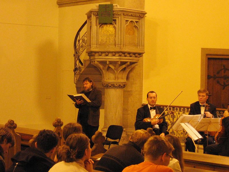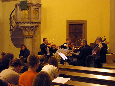 V neděli 1.10. v 19:30 jsme zahájili podzimní řadu hudebních nešpor koncertním vystoupením Walingerova kvarteta. Posluchači měli možnost vyslechnout jedinečné podání skladby Josepha Haydna Sedm slov vykupitelových na kříži, které bylo proloženo čtením příslušných textů z evangelia v podání faráře Štěpána Hájka.