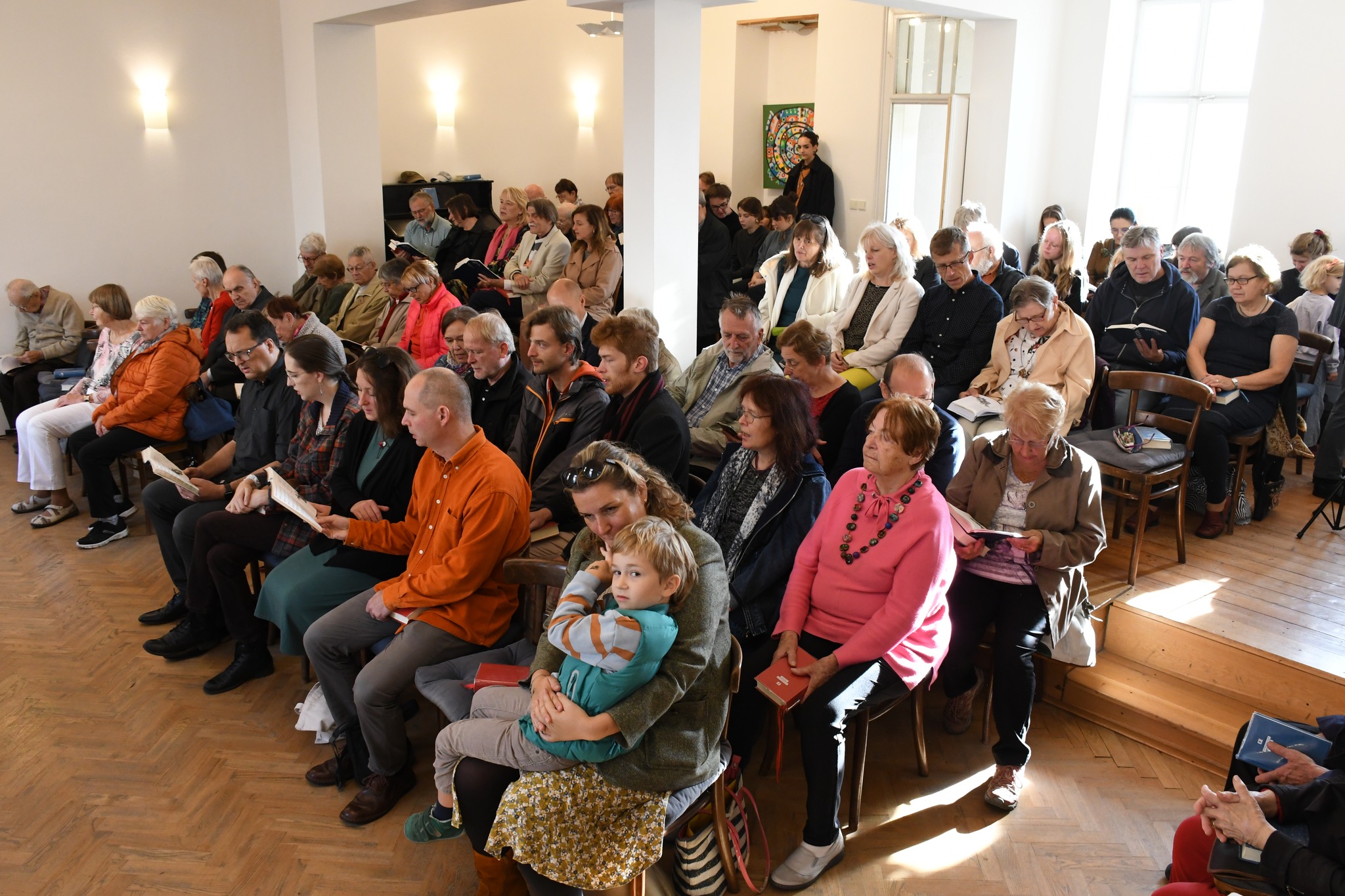 Letos, v neděli 28. září 2025, jsme si připomněli 90 let sborového domu a 80 let samostatnosti sboru. K této příležitosti jsme pozvali synodního seniora Pavla Pokorného, aby vedl bohoslužby. S pamětníky jsem poté rozpomínali na dřívějšího faráře Milana Mrázka a četla se i jeho poesie. Po společném obědě jsme debatovali u kávy a čaje se synodním seniorem až do odpoledních hodin.