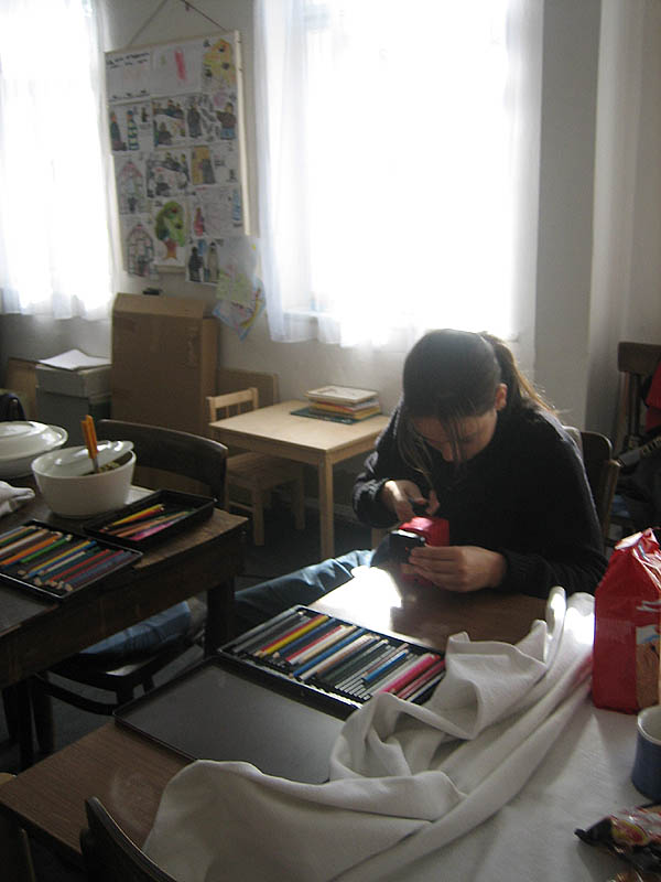 Ořezávání pastelek pro nejmenší v nedělní škole – Marika.