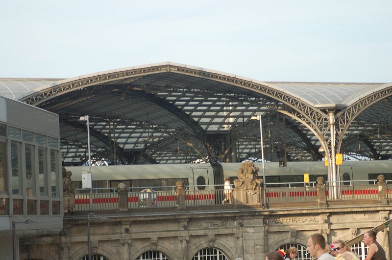 Pokud se náhodnému pozorovateli zdá, že ten most vede přímo k pověstnému kolínskému Dómu a že tedy vlak zřejmě projíždí skrz kostel, není daleko od pravdy. Všimněte si těch lidiček, kteří sedí před Dómem na schodech. Na co se asi koukají? Přece na nádraží!