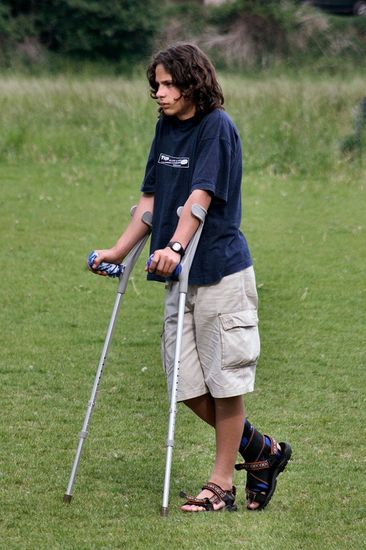 Zatímco Danovi trénink zjevně svědčí (tentokrát vydržel až do konce a že se nešetřil!) Jirka sám sebe odnesl třikrát na nosítkách s krutě bolavým kolenem. Inu, kolena mládeže jsou v podobné výšce…