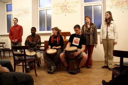 Druhý letošní Dvorek se mimo jiné vyznačoval tím, že nebyl na dvorku, ale v modlitebně a navíc nebyl v neděli dopoledne, ale v pátek večer.
