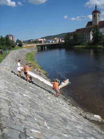 Přenášení jezu ve Strakonicích (hokna)