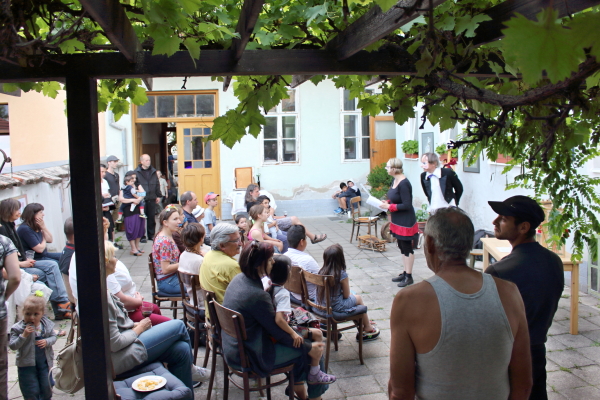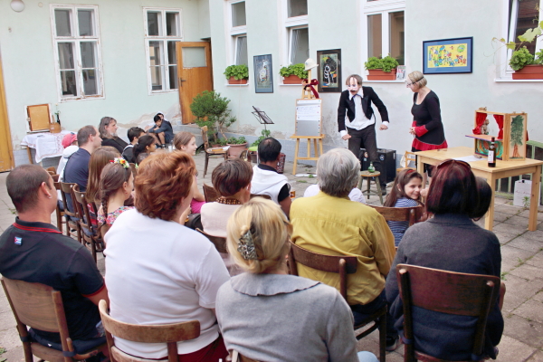 Divadelní představení Bilbo Compagnie Sommeliér bylo hlavním bodem programu letošní Noci kostelů, i když zpívání ze zpěvníku Svítá bylo též fantastické, neboť se sešla vynikající partička muzikantů – sourozenci Koneční, Ondřej H. a Klárka P. Tím skončil letošní festival Husovický dvorek.