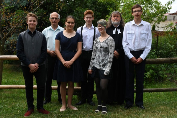 Čtyři mladí lidé byli v neděli 19. 6. pokřtěni: Adam S., Vašek S., Anička S. a Štěpánka H. Konfirmováni byli Štěpánka H., Ráchel K., Adam S., Vašek S. a Ondra S. Gratulujeme!!
